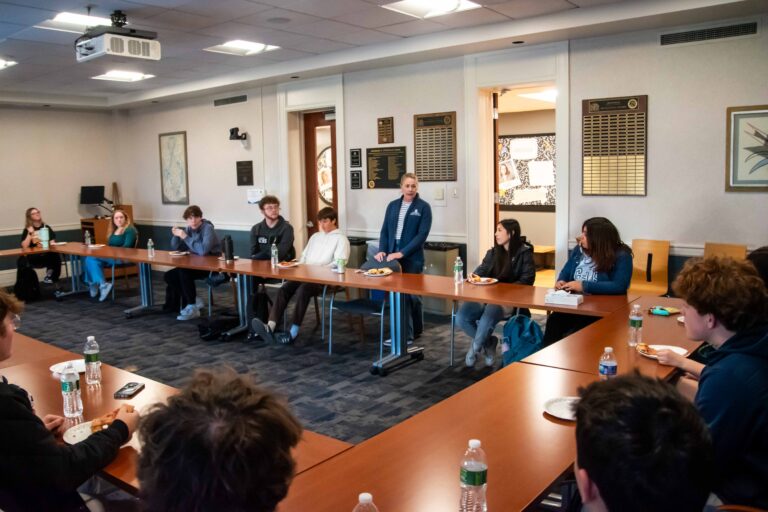 Students like Zach Hanson benefit from the practice. A multi-interested, first-year student in the college, Hanson took the opportunity at his lunch with Berg to also introduce himself to his fellow students. He especially enjoyed his interactions with the college’s Comm Coaches, a group of student mentors who help new undergraduates transition to college life.