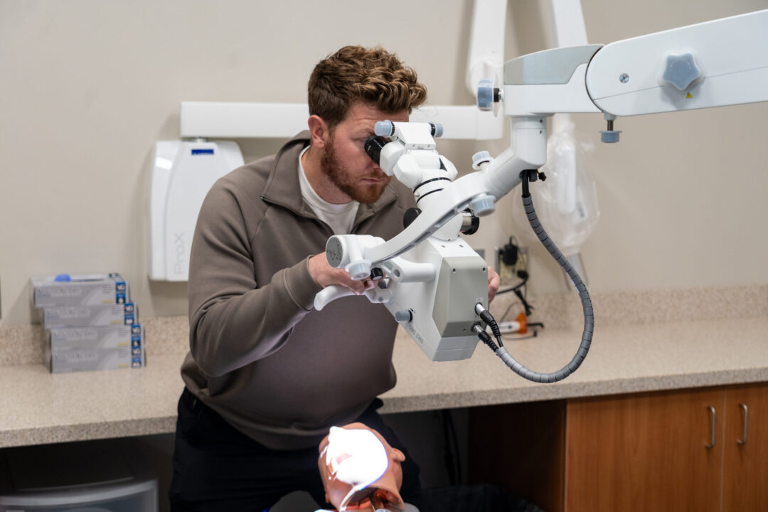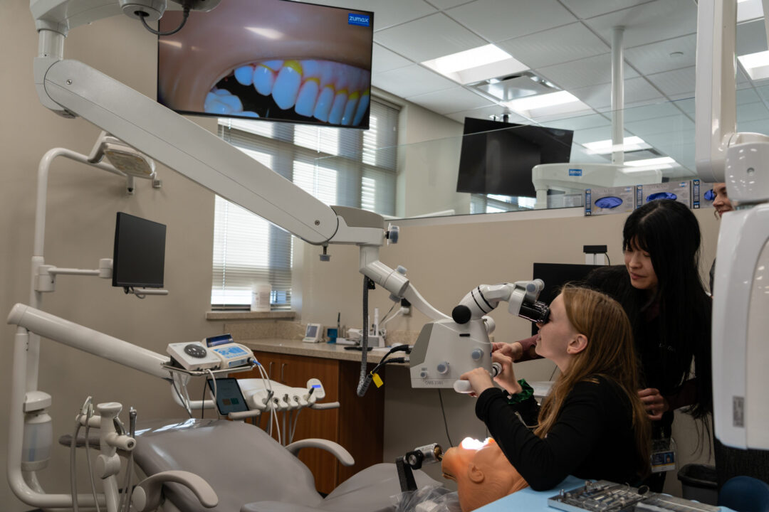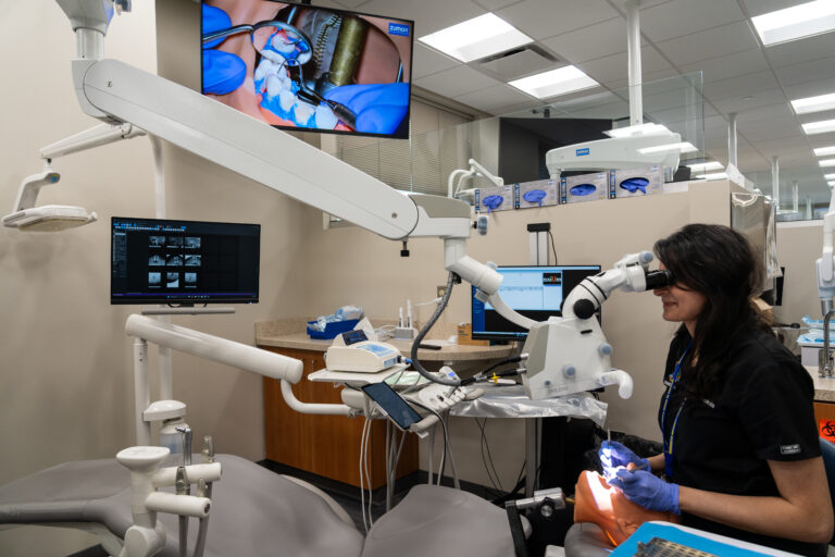 “This set-up represents the latest in technology and educational design, especially for our pregraduate dental students, who no longer have to stare at a rubber dam and imagine what’s happening; they can now see what the resident sees through the microscope, with procedures projected live onto monitors in real time.,” said Dr. Stephanie Sidow, postgraduate program director of endodontics.