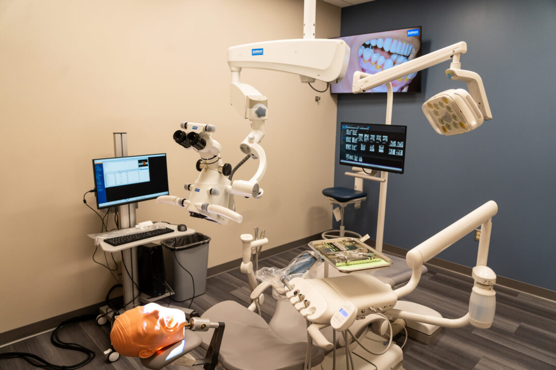 The state-of-the-art clinic includes 13 operatories fully equipped for endodontics; each features a ceiling-mounted Zumax microscope, a 4K 2D integrated camera and recording system, varioscopes and wall-mounted monitors. The clinic also features a new J. Morita Veraview X800 CBCT machine. Ten of the operatories are designated for the graduate endodontic program, including two large rooms designed for surgical procedures or use as quiet rooms. Three of the chairs are for predoctoral endodontic training.