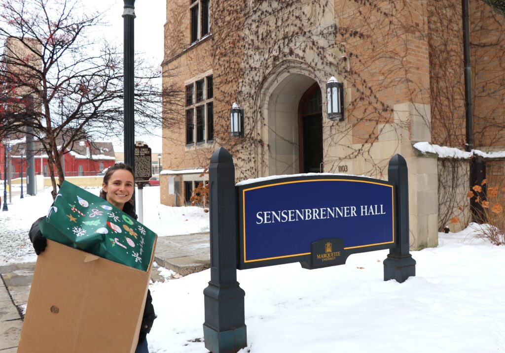 For the first time in recent memory, we had snow for the annual Christmas Tree lighting ceremony! The snow and cold didn’t stop students, faculty and staff from coming out to Westowne Square to enjoy hymns and carols from the Marquette Pep Band and All-Campus Choir and hot chocolate and cookies. This year’s Christmas video captures the memory of the annual tradition.