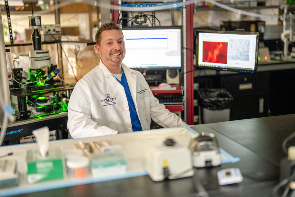 Marquette’s College of Health Sciences has built a reputation as a powerhouse in the neuroscience of both mental health and addiction. That has provided a platform for support from the Charles E. Kubly Mental Health Research Center, established at Marquette in 2015, the Kubly family and other donors to have a real, scalable and outsized impact on advanced cutting-edge science. “Without their support during the early stages of my career at Marquette, it would have been incredibly difficult to establish parallel lines of research in stress pathology and neuropsychiatric disease,” Hearing says.