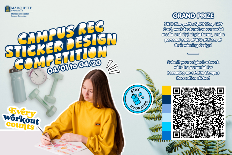 The grand-prize winner will receive a $100 Marquette Spirit Shop gift card, 100 stickers featuring their design and recognition as a featured artist across Campus Recreation digital platforms.