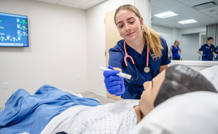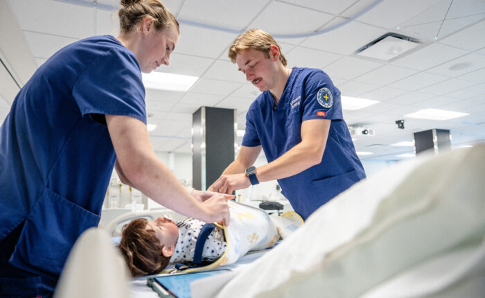 “In simulation, we’re helping our students prepare themselves to do the work of nursing while making connections to their coursework and fostering reflection about their beginning nursing practice,” says Amanda Potter, clinical instructor. “It’s all within a safe, controlled environment.”