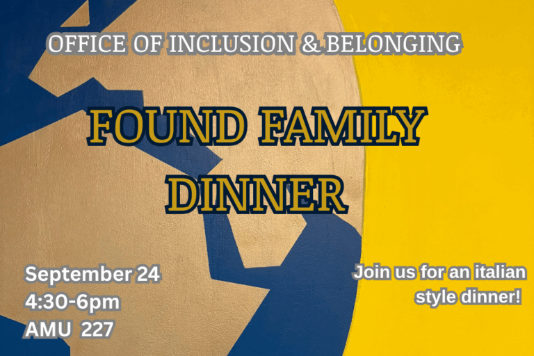 The Office of Inclusion and Belonging will host a Found Family Dinner on Wednesday, Sept. 24, from 4 p.m. to 6:30 p.m. in AMU 227.
