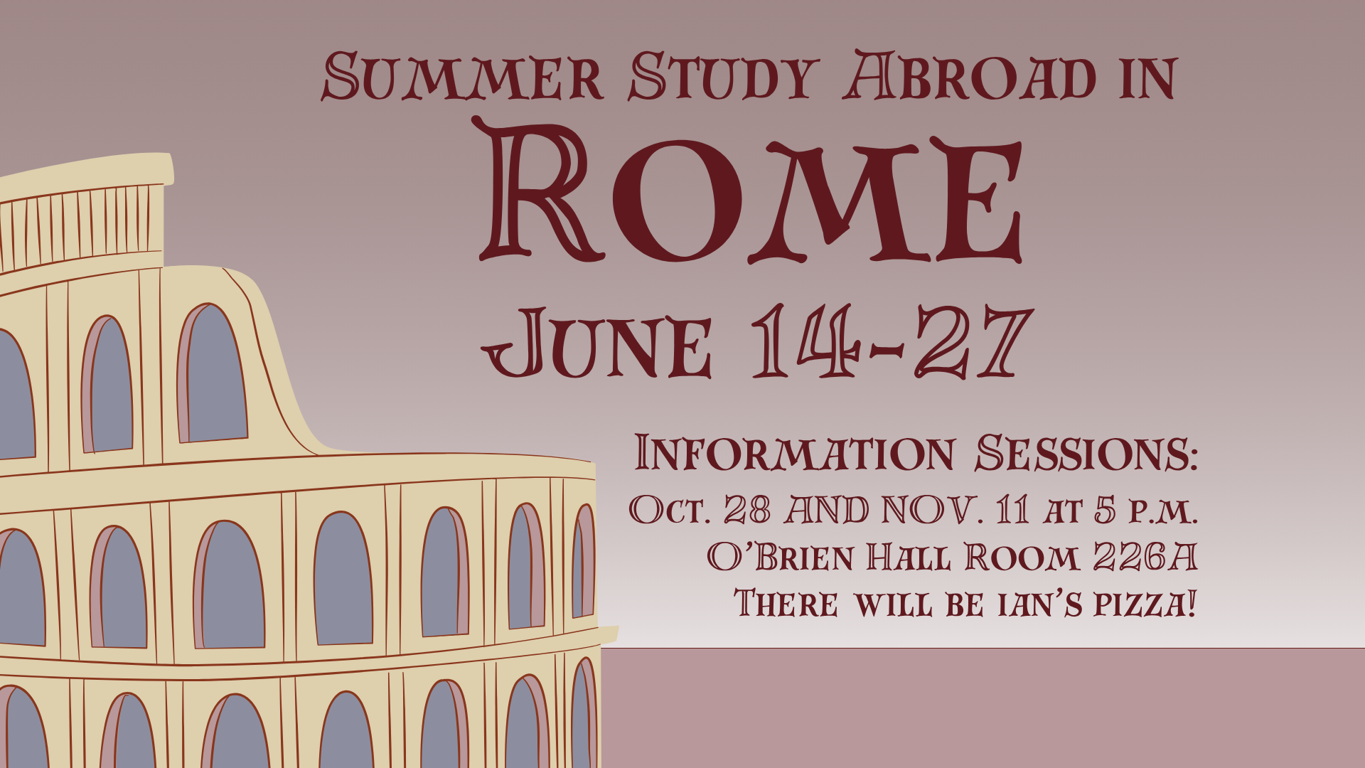 Students who are interested in Marquette Business’ study abroad program in Rome are invited to take part in one of two information sessions about the course held on Tuesday, Oct. 28 or Tuesday, Nov. 11. These sessions will go from 5-6 p.m. and are in O’Brien Hall Room 226A. There will be Ian’s Pizza served.