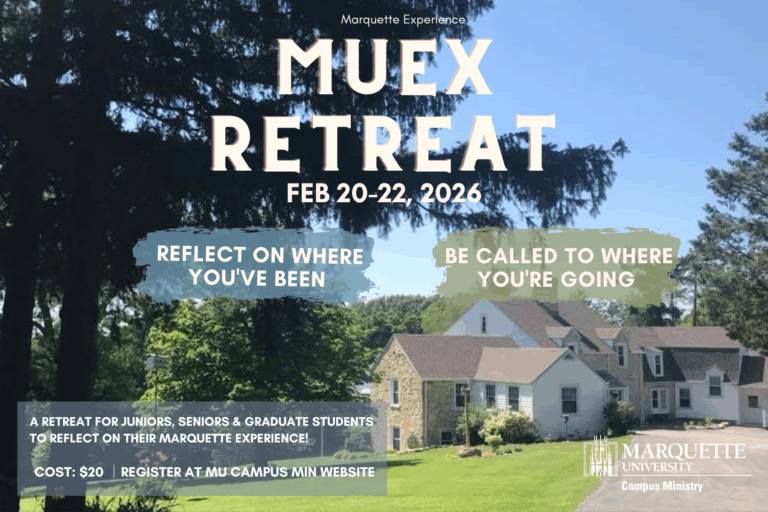 Open to juniors, seniors and graduate students, MUEX is a community-oriented weekend retreat rooted in the Ignatian values that shape Marquette. Hosted by Campus Ministry, the retreat invites students to reflect on their Marquette experience while looking ahead to what’s next.
