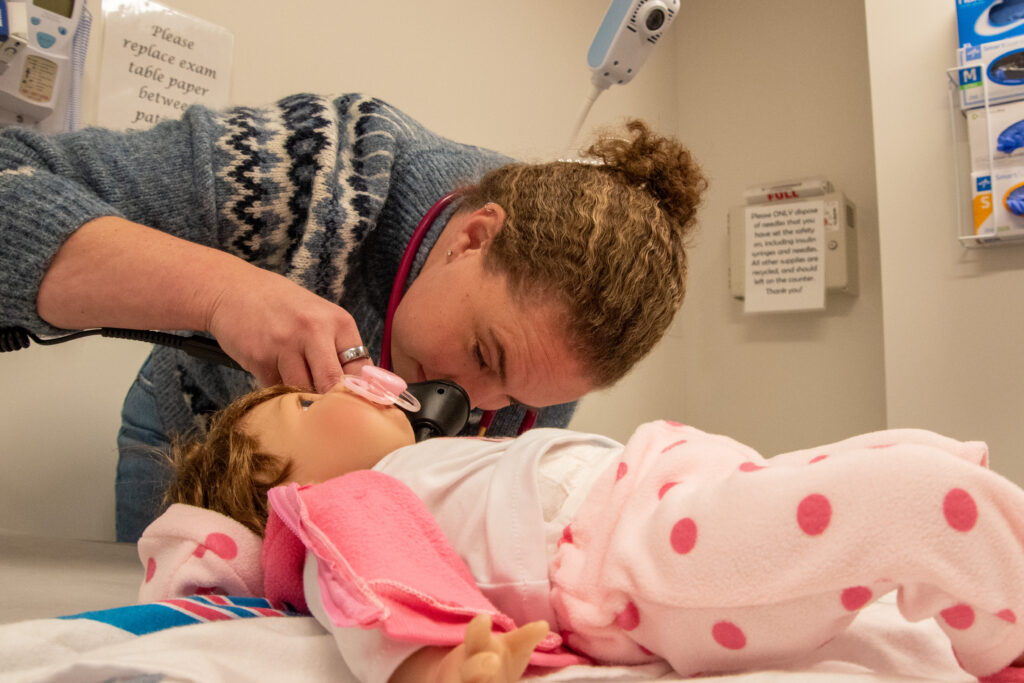“There’s a lot of communication happening there, both verbal and nonverbal, because you have to share information with the family and then think about what’s the right way to share it with the child in an age-appropriate way,” adds Betsy Flasch, a clinical pediatric instructor and the primary care program director.