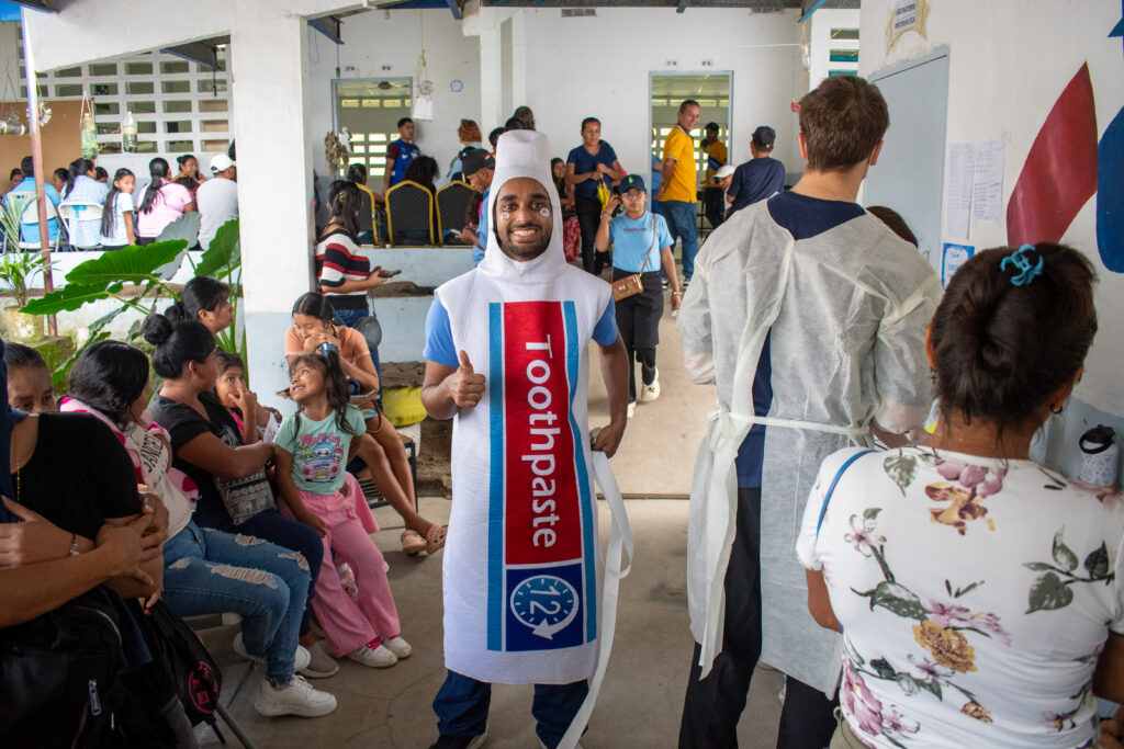 They even went so far as to dress up as large tubes of toothpaste and toothbrushes to entertain community members while using large props to show how to properly brush teeth and floss.