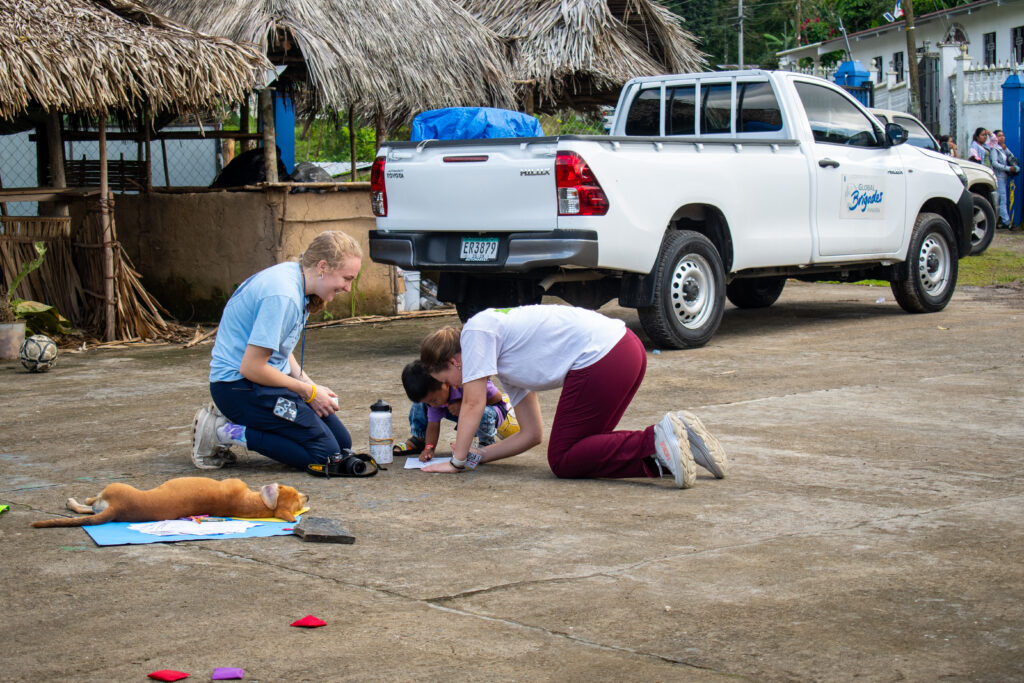 “Working with kids is particularly important because it encourages them to create a positive relationship with healthcare and personal hygiene,” Roubik added. “Playing soccer, sitting with them, and offering stickers and coloring sheets usually lead to children spending most of the day in charla and learning more.”