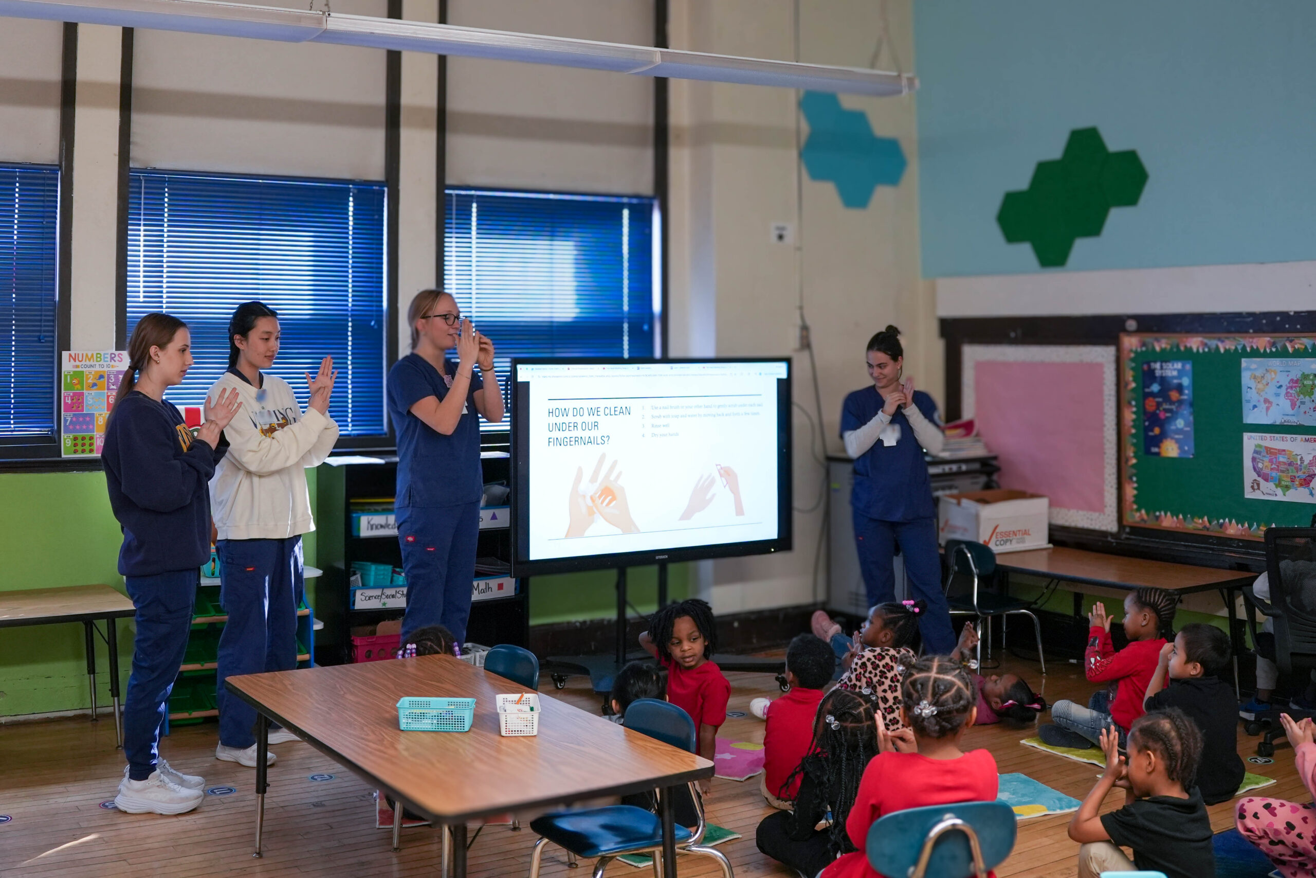 Most people do not remember school nurses having a presence outside of their dedicated offices, which were to be visited only when feeling sick. That concept of a school nurse has changed drastically. “My students are not waiting for a student to come into their office, they’re going into classrooms proactively,” Young says. Nursing students take on recess duty, perform assessments of community health needs and give weekly presentations on ways for students to live healthier lives.