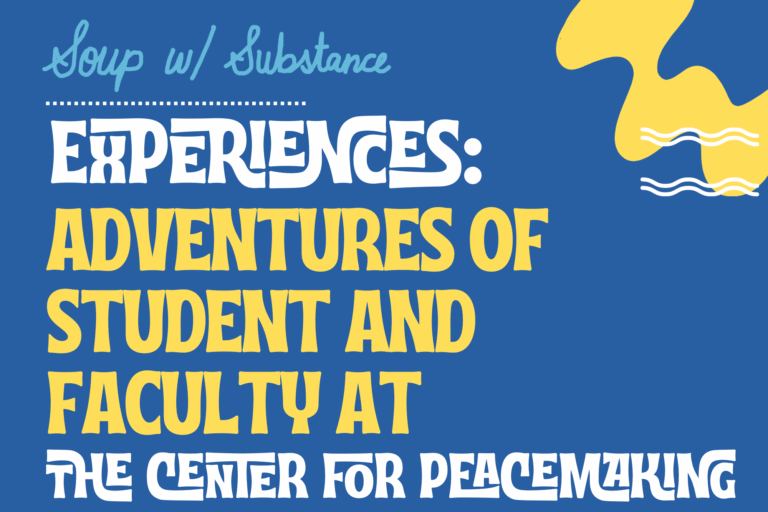 Center for Peacemaking student fellows, immersion trip participants and faculty fellows will share their involvement with the Center for Peacemaking at Soup with Substance on Wednesday, Feb. 25, at noon in the AMU Lunda Room.
