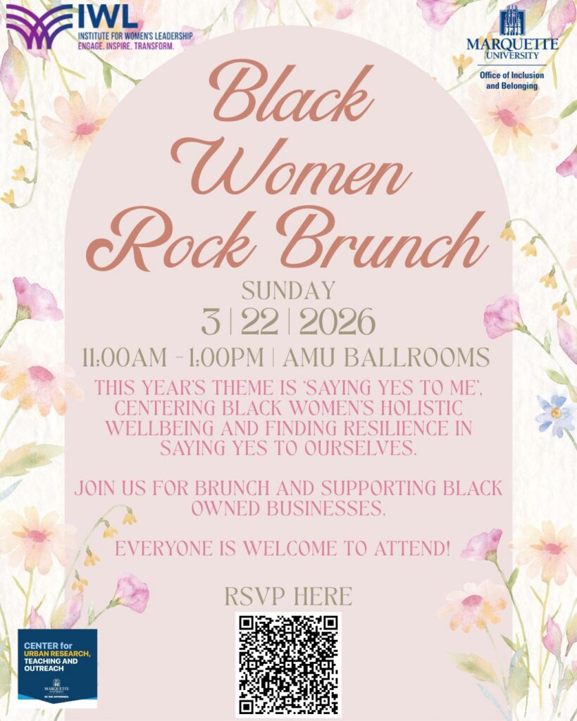 Join the Office of Inclusion and Belonging, in collaboration with the Institute for Women’s Leadership and the Center for Urban Research, Teaching and Outreach, for the annual Black Women Rock Brunch on Sunday, March 22, from 11 a.m. to 1 p.m. in the AMU Monaghan Ballrooms.