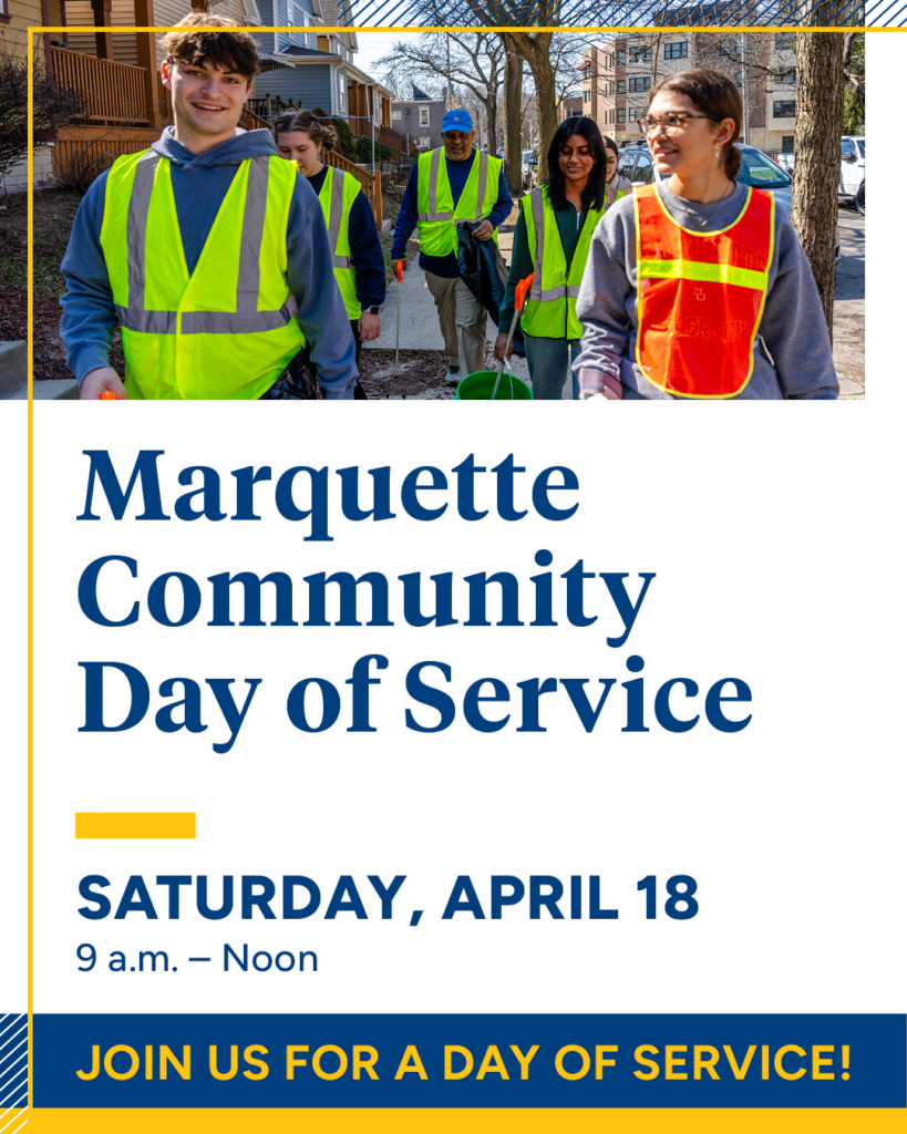 Marquette will host its largest and longest‑running day of service on Saturday, April 18, from 9 a.m. to noon in the AMU Monaghan Ballrooms. Formerly known as Hunger Clean-Up, the Marquette University Community Day of Service has been a university tradition since 1989, engaging more than 34,000 students, faculty, staff and alumni in service projects across Milwaukee.