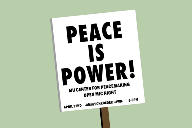 Center for Peacemaking open mic night, April 23 April 20, 2026 < 1 min. read Join the Center for Peacemaking at its “Peace Is Power” open mic night on Wednesday, April 22, from 6 p.m. to 8 p.m. on Eckstein Common. Prepare your own performance or come and watch. No registration is required.