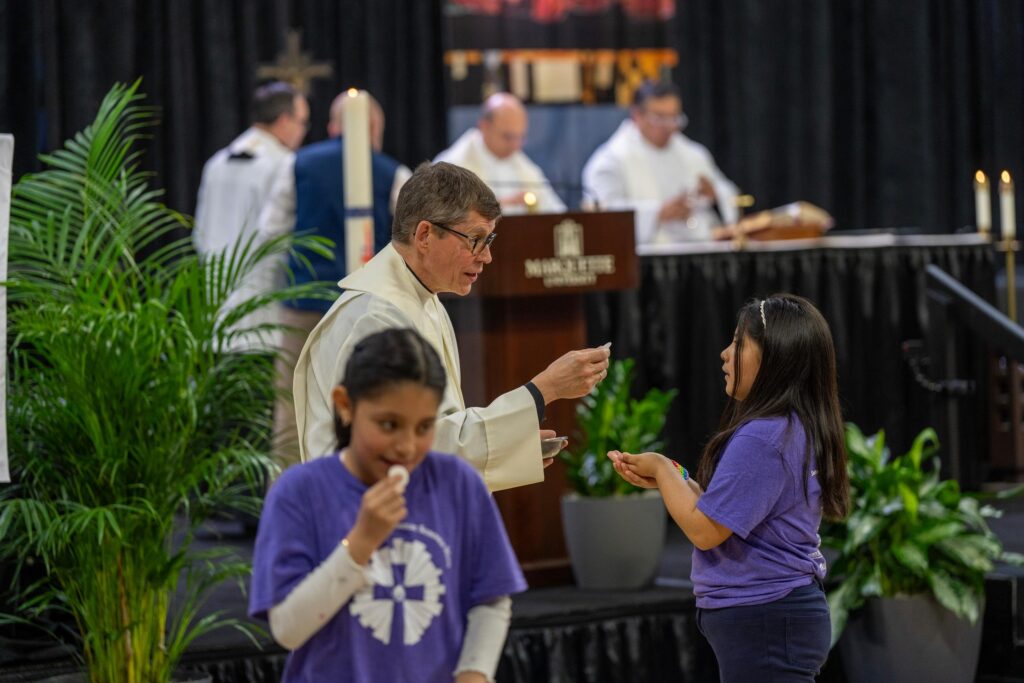 Seton Catholic Schools Mass celebrated at Al McGuire Center: Earlier today, we welcomed more than 3,500 Seton Catholic Schools students, faculty, staff and my fellow Seton Catholic Schools board members for a special Mass celebrated by Milwaukee Archbishop Jeffrey Grob in the Al McGuire Center. Members of our Public Affairs, Campus Ministry, University Special Events, Athletics and MUPD teams were instrumental in making the morning a success.