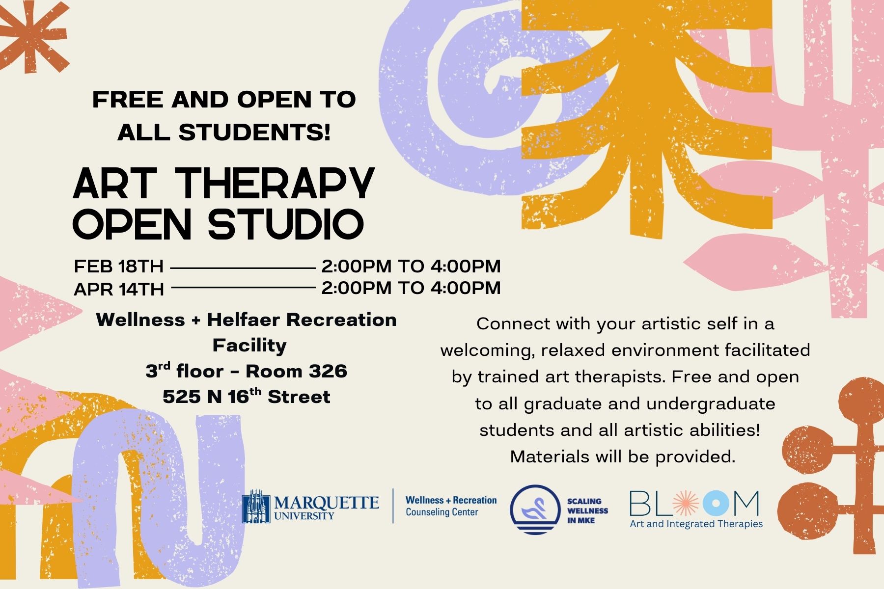 The Marquette Counseling Center will host an art therapy open studio on Wednesday, Feb. 18, from 2 p.m. to 4 p.m. in the Wellness + Helfaer Recreation facility room 326. The open studio offers undergraduate and graduate students a welcoming, relaxed space to connect with their artistic side, facilitated by trained art therapists. The event is free and open…