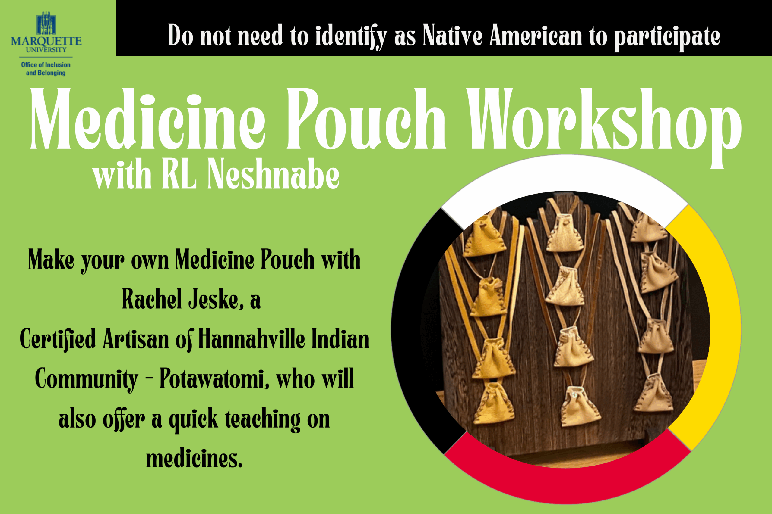 The campus community is invited to celebrate Native American Heritage Month by creating a medicine pouch with RL Neshnabe on Thursday, Nov. 13, from 2:30 p.m. to 5:30 p.m. in the Center for Engagement and Inclusion (AMU 111). The workshop will be led by Rachel Jeske, a certified artisan of the Hannahville Indian Community, who…