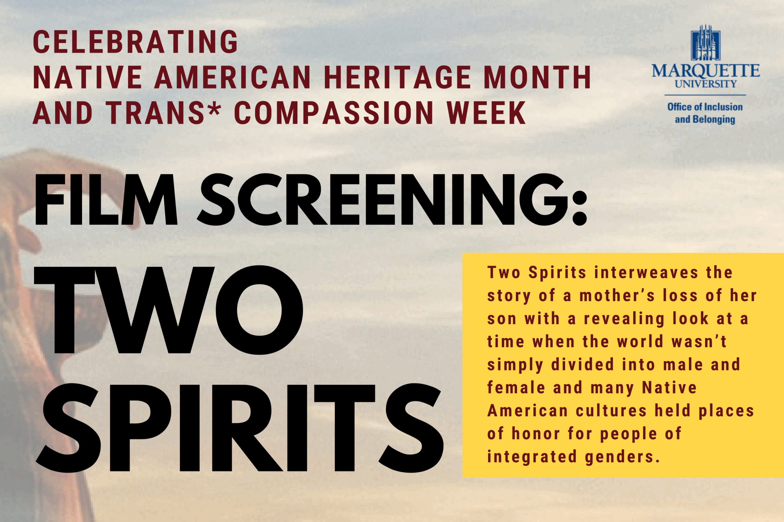 The campus community is invited to a showing of “Two Spirits” on Thursday, Nov. 20, at noon in the Center for Engagement and Inclusion (AMU 111). The film interweaves the story of a mother’s loss of her son with a revealing look at a time when the world wasn’t simply divided into male and female—and…