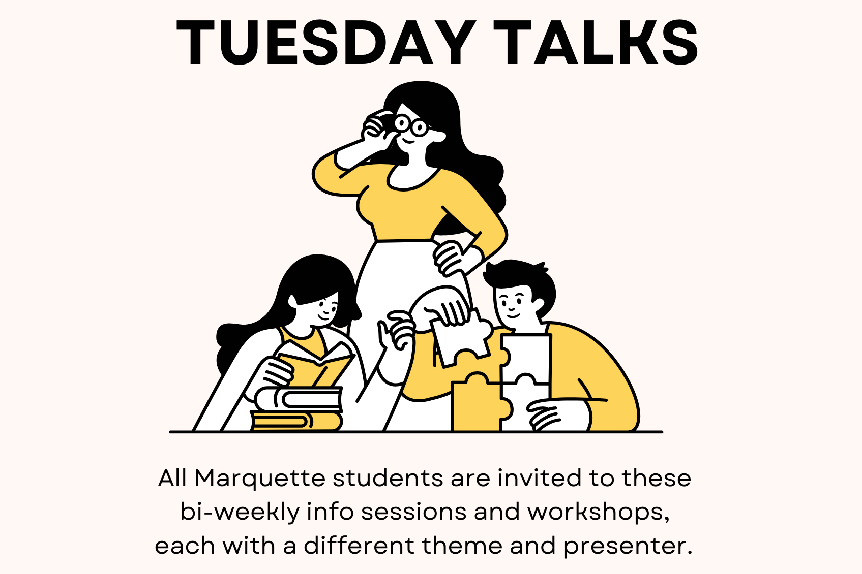 All Marquette students are invited to these free bi-weekly info sessions and workshops, each with a different theme and presenter.