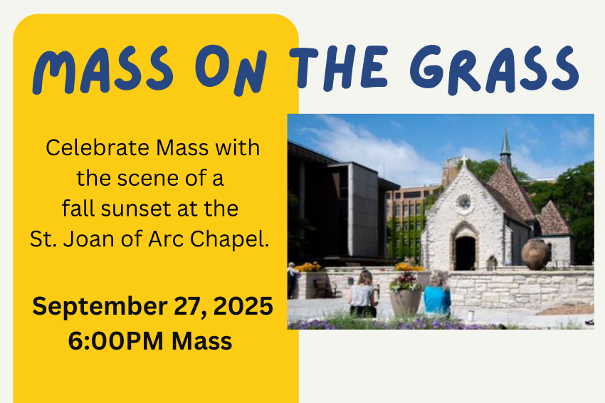 Join the Office of Mission and Ministry for an outdoor Mass on the Grass on Saturday, Sept. 27, at 6 p.m. in the Gratitude Garden outside St. Joan of Arc Chapel. Bring your own blankets and chairs, and make sure to plan according to the weather. Light snacks and fellowship will be provided after Mass.…